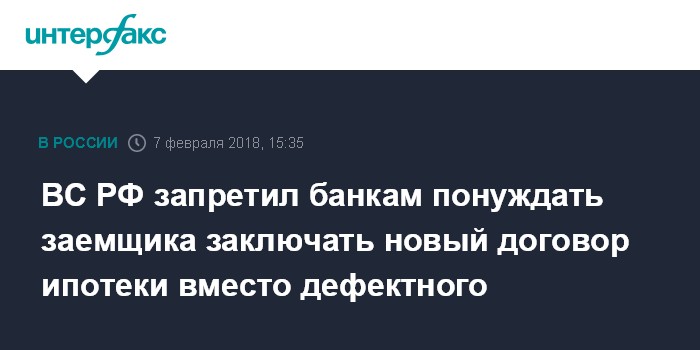 ВС РФ запретил банкам понуждать заемщика заключать новый договор ипотеки вместо дефектного
