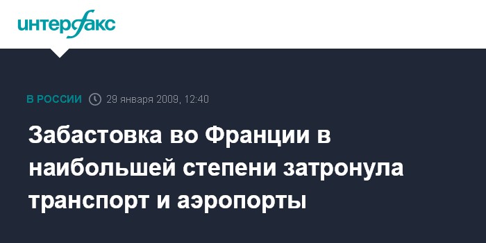 Представители французских авиалиний "Эр Франс" сообщили об отмене 30% рейсов в аэропорту "Орли" и 10% рейсов в аэропорту "Руасси - Шарль де Голль". Между тем представители авиакомпаний заявляют о тридцатиминутных задержках рейсов в двух аэропортах Парижа.