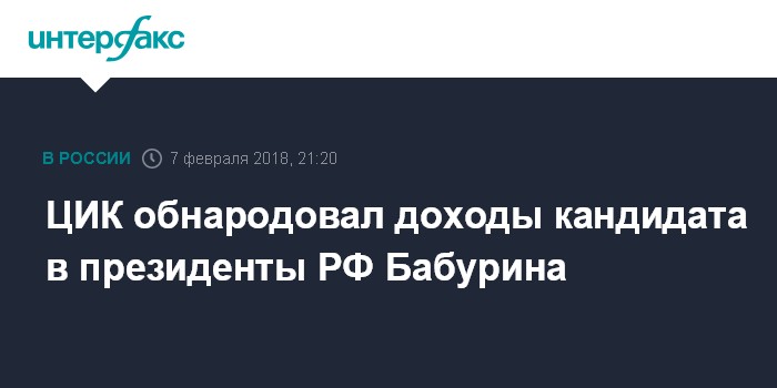 ЦИК обнародовал доходы кандидата в президенты РФ Бабурина