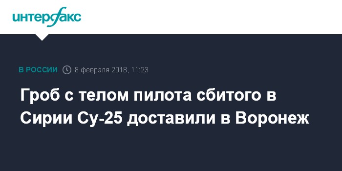 Москва. 8 февраля. INTERFAX.RU - В Воронеж из Москвы доставили гроб с телом пилота сбитого в Сирии штурмовика Су-25 Романа Филипова, сообщили "Интерфаксу" в правительстве региона.