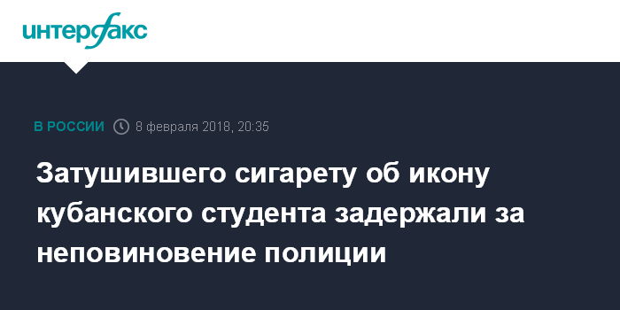 Затушившего сигарету об икону кубанского студента задержали за неповиновение полиции