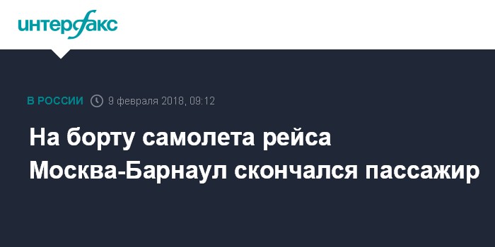 Москва. 9 февраля. INTERFAX.RU - Пассажир умер на борту самолета по пути из Москвы в Барнаул после приступа психоза, сообщил в пятницу "Интерфаксу" информированный источник.