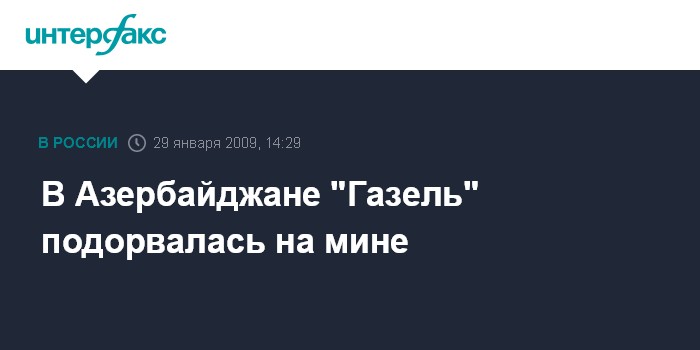 Баку. 29 января. INTERFAX.RU - Грузовой автомобиль "Газель" подорвался на мине вблизи линии соприкосновения армянских и азербайджанских вооруженных сил, сообщает азербайджанский телеканал ANS в четверг. В результате взрыва пострадали три пассажира. Раненые размещены в близлежащих больницах.