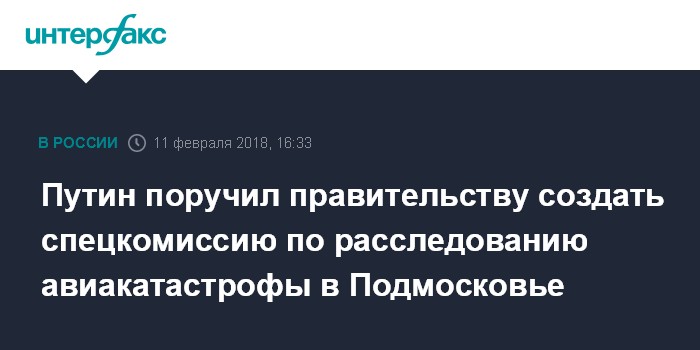 Путин поручил правительству создать спецкомиссию по расследованию авиакатастрофы в Подмосковье