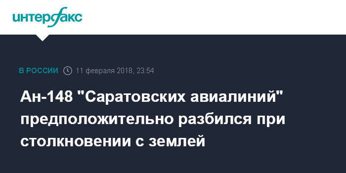 Ан-148 "Саратовских авиалиний" предположительно разбился при столкновении с землей
