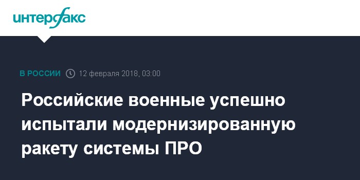 Москва. 12 февраля. INTERFAX.RU - Модернизированная ракета российской системы противоракетной обороны (ПРО) успешно прошла испытания на казахстанском полигоне Сары-Шаган, сообщает официальная газета Минобороны РФ "Красная звезда".
