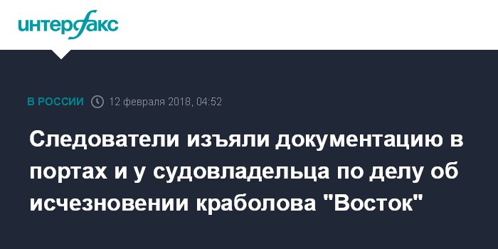 Москва. 12 февраля. INTERFAX.RU - Следователи, которые выясняют причины исчезновения в Японском море краболовного судна "Восток", пока не рассматривают ни одну из версий случившегося как основную.
