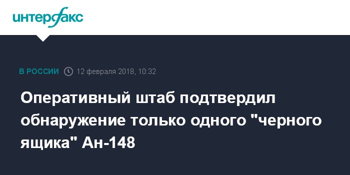 Москва. 12 февраля. INTERFAX.RU - Первый черный ящик разбившегося в Подмосковье Ан-148 обнаружен на месте крушения; найденный накануне предмет отношения к самописцам не имеет, сообщили "Интерфаксу" в оперативном штабе на месте ЧС.