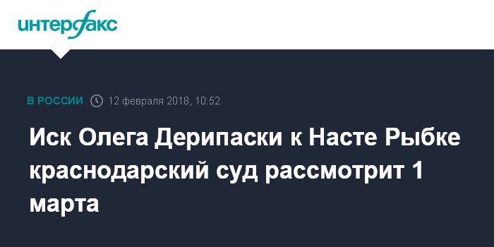 Иск Олега Дерипаски к Насте Рыбке краснодарский суд рассмотрит 1 марта