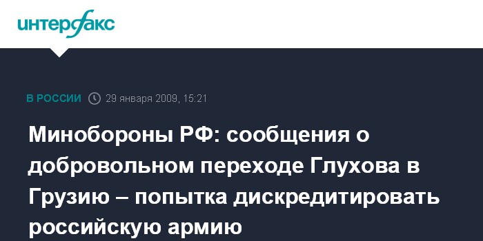 Минобороны РФ: cообщения о добровольном переходе Глухова в Грузию – попытка дискредитировать российскую армию
