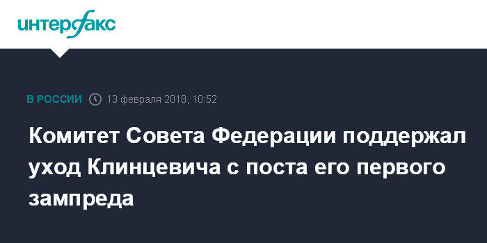 Клинцевич при этом остается членом комитета, а на должность первого заместителя вместо него была выдвинута кандидатура заместителя председателя комитета Александра Ракитина, представляющего в Совете Федерации Карелию. Это предложение члены комитета также поддержали.