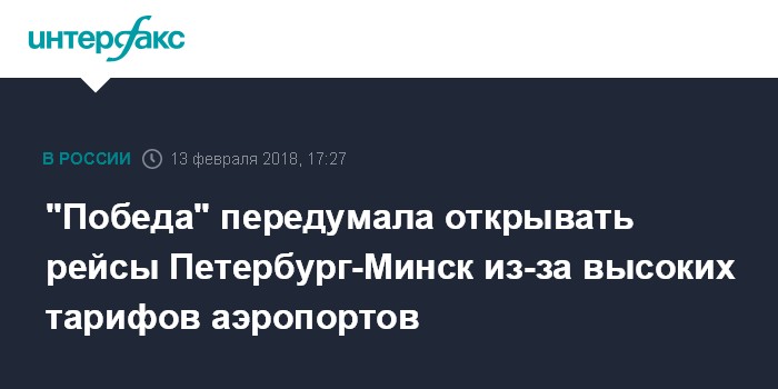 Москва. 13 февраля. INTERFAX.RU - Авиакомпания "Победа" (входит в группу "Аэрофлот" ) вышла из переговоров о прямых рейсах из Петербурга в Минск, сообщили "Интерфаксу" в пресс-службе компании.
