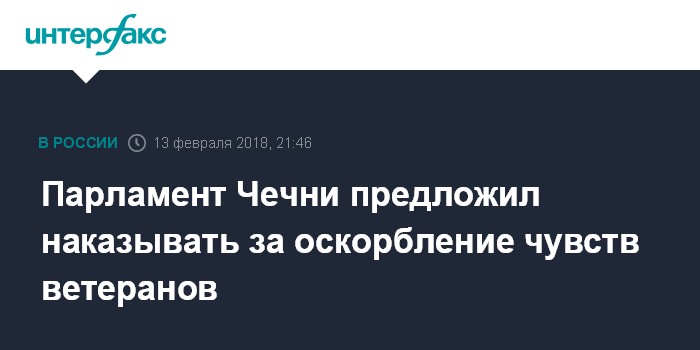 Парламент Чечни предложил наказывать за оскорбление чувств ветеранов
