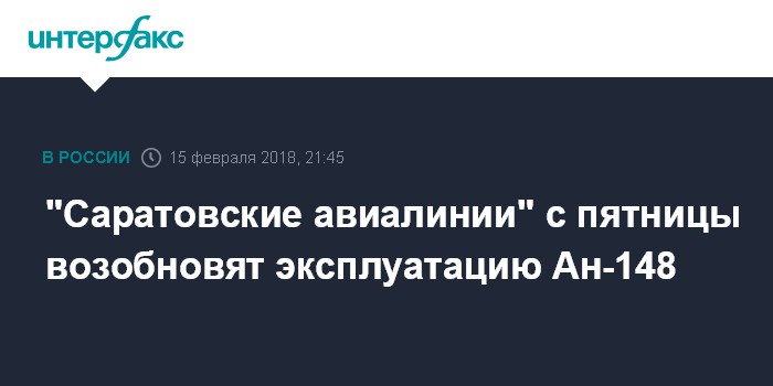 Москва. 15 февраля. INTERFAX.RU - Авиакомпания "Саратовские авиалинии" после внеочередных технических проверок самолетов Ан-148 специалистами авиационно-технической базы авиакомпании возобновляет полеты на этом типе самолетов, сообщили "Интерфаксу" в пресс-службе авиаперевозчика в четверг.