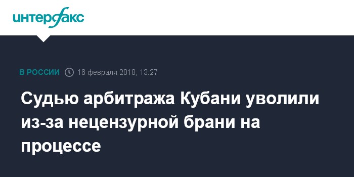 Судью арбитража Кубани уволили из-за нецензурной брани на процессе