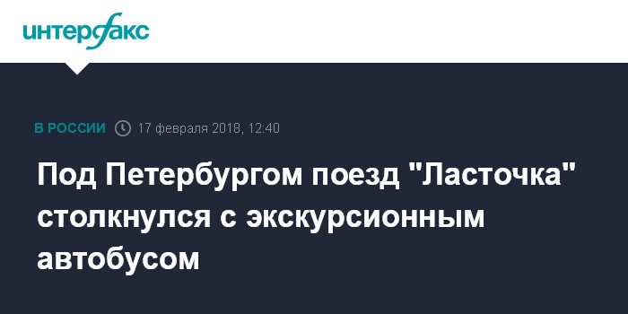 Москва. 17 февраля. INTERFAX.RU - Поезд "Ласточка" столкнулся с экскурсионным автобусом на переезде в пригороде Санкт-Петербурга, в настоящее время медики работают с двумя пассажирами, сообщили "Интерфаксу" в пресс-службе ГУ МЧС города.