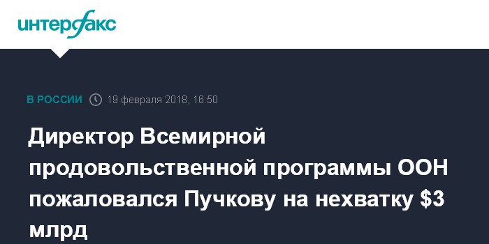 Директор Всемирной продовольственной программы ООН пожаловался Пучкову на нехватку $3 млрд