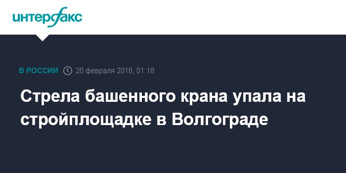 Москва. 19 февраля. INTERFAX.RU - Стрела башенного крана упала в понедельник на площадке строительства жилого комплекса "Родниковая долина" в Советском районе Волгограда, сообщил "Интерфаксу" руководитель пресс-службы регионального управления МЧС Дмитрий Уланов.