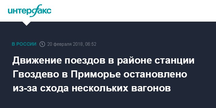 Москва. 20 февраля. INTERFAX.RU - Четыре пустых вагона сошли с рельсов на участке Барановский - Хасан в Приморье, сообщила Дальневосточная железная дорога (ДВЖД).