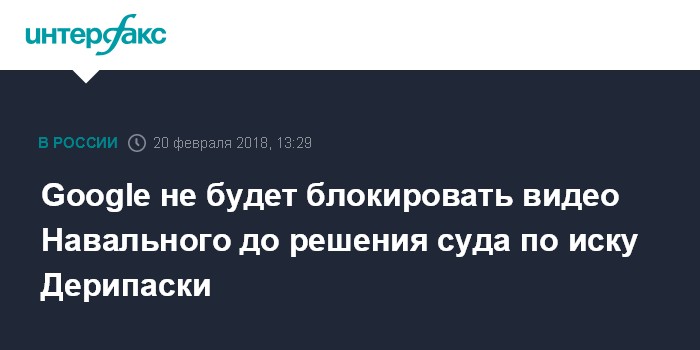 Google не будет блокировать видео Навального до решения суда по иску Дерипаски