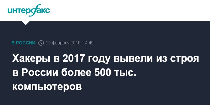 Хакеры в 2017 году вывели из строя в России более 500 тыс. компьютеров