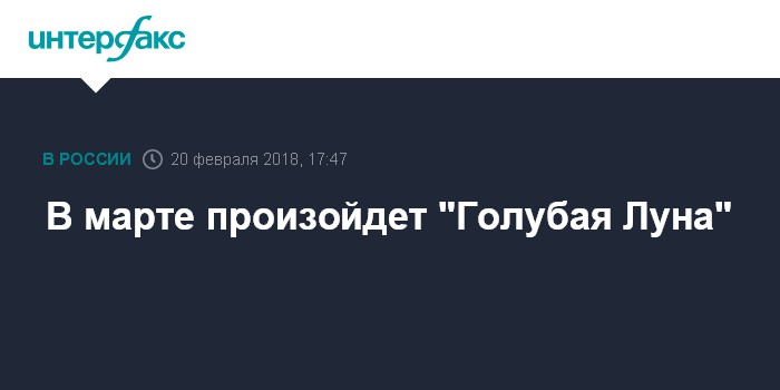 Москва. 20 февраля. INTERFAX.RU - Сразу два полнолуния можно будет наблюдать в марте - 2 и 31 числа, такое астрономическое явление называют "Голубой Луной" за его редкость, сообщает пресс-служба Московского Планетария.