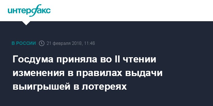 Госдума приняла во II чтении изменения в правилах выдачи выигрышей в лотереях