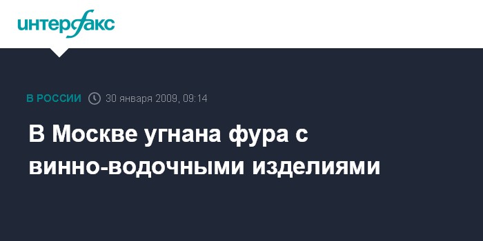 Москва. 30 января. INTERFAX.RU - На востоке столицы в четверг утром неизвестные угнали грузовую фуру с полуприцепом-рефрижератором, груженную винно-водочными изделиями, сообщил "Интерфаксу" источник в правоохранительных органах города.