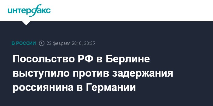 Посольство РФ в Берлине выступило против задержания россиянина в Германии