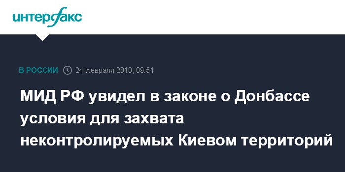 "24 февраля 2018 г. вступил в силу скандальный закон о так называемой "реинтеграции Донбасса". Тем самым в Киеве окончательно подтвердили свою нацеленность на силовое решение конфликта на Юго-Востоке Украины (. . .) Подписав упомянутый закон, Порошенко фактически перечеркнул Минские соглашения, развязав руки "партии войны". Ни о каком прямом диалоге с властями непризнанных республик, деэскалации противостояния и поиске путей мирного политического урегулирования речи не идет. Напротив, документ создает условия для насильственного захвата неконтролируемых Киевом территорий Донецкой и Луганской областей, легализует использование украинской армии против мирного населения", - заявляют в МИД РФ.