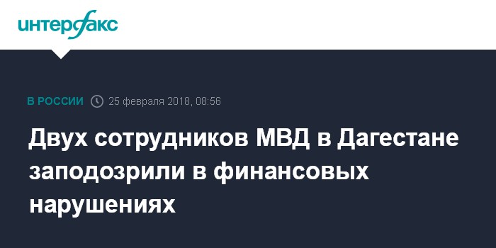 Москва. 25 февраля. INTERFAX.RU - Оперативниками службы собственной безопасности МВД по Дагестану в ходе оперативно-розыскных мероприятий совместно с сотрудниками УФСБ выявлен факт финансовых нарушений.