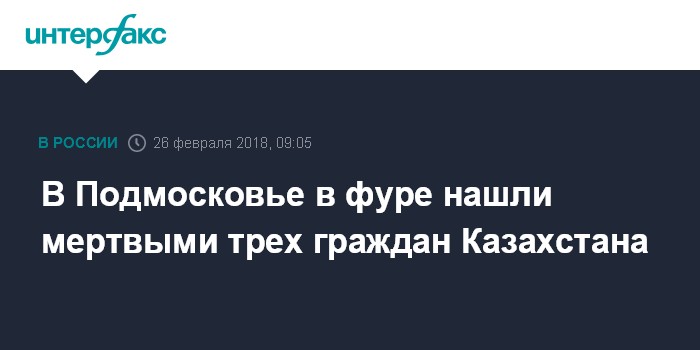 Москва. 26 февраля. INTERFAX.RU - Тела трех граждан Казахстана обнаружены в фуре в Подмосковье, сообщил "Интерфаксу" осведомлённый источник.