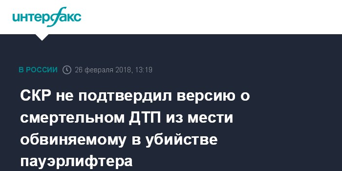 СКР не подтвердил версию о смертельном ДТП из мести обвиняемому в убийстве пауэрлифтера