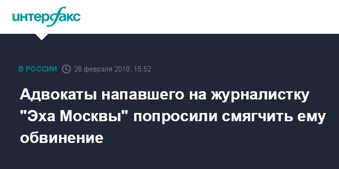 Адвокаты напавшего на журналистку "Эха Москвы" попросили смягчить ему обвинение