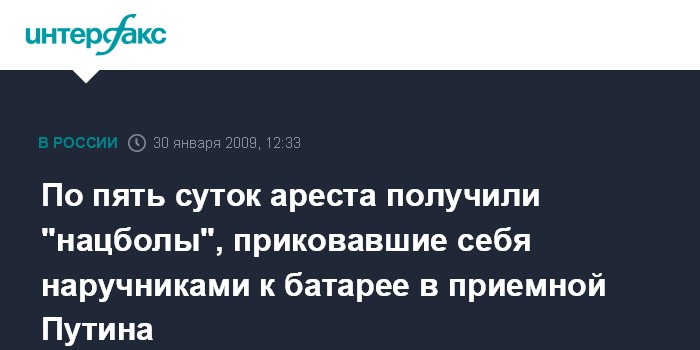 По пять суток ареста получили "нацболы", приковавшие себя наручниками к батарее в приемной Путина
