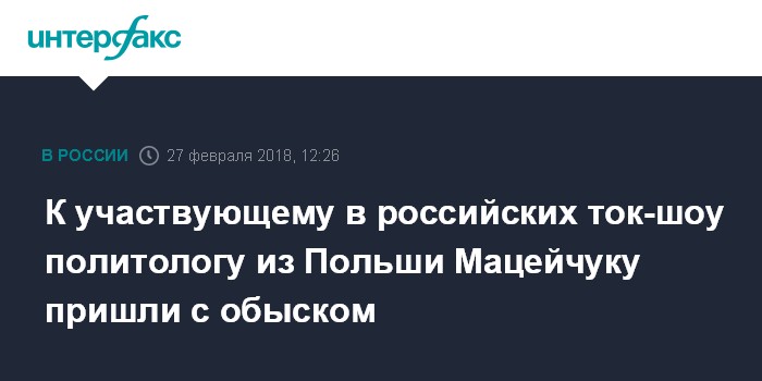 К участвующему в российских ток-шоу политологу из Польши Мацейчуку пришли с обыском