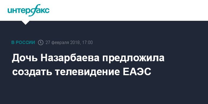 Москва. 27 февраля. INTERFAX.RU - Председатель комитета сената Казахстана по международным отношениям, обороне и безопасности Дарига Назарбаева (старшая дочь президента республики Нурсултана Назарбаева - ИФ) назвала недостаточным освещение в СМИ интеграционных процессов и предложила создать телевидение ЕАЭС.