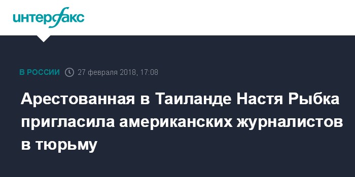 Арестованная в Таиланде Настя Рыбка пригласила американских журналистов в тюрьму