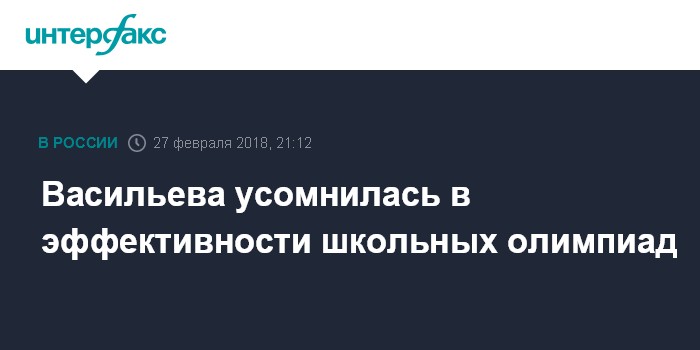 Москва. 27 февраля. INTERFAX.RU - Министр образования и науки РФ Ольга Васильева предлагает сократить количество школьных олимпиад.
