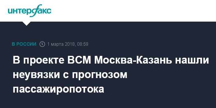 Москва. 1 марта. INTERFAX.RU - Проблемы с корректностью прогноза пассажиропотока, на котором строится доходность, обнаружились в проекте железнодорожной высокоскоростной магистрали (ВСМ) Москва-Казань - даже в ее усеченном варианте до Владимира.