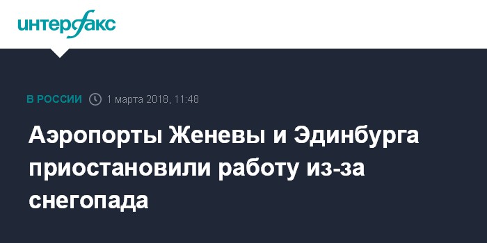 Аэропорты Женевы и Эдинбурга приостановили работу из-за снегопада