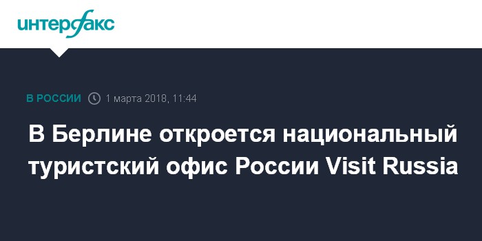 Москва. 1 марта. INTERFAX.RU - Официальная церемония открытия национального туристского офиса России Visit Russia состоится 7 марта в Берлине в рамках крупнейшей международной туристской выставки ITB Berlin, сообщает в четверг пресс-служба Ростуризма.