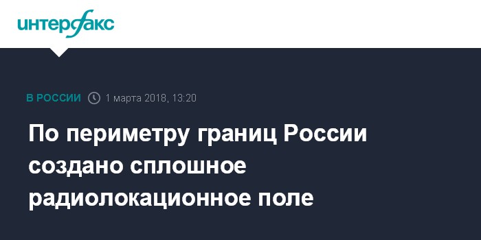 Москва. 1 марта. INTERFAX.RU - Сплошное радиолокационное поле создано по периметру границ России, заявил президент РФ Владимир Путин.