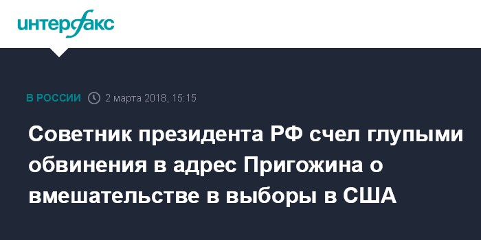 Советник президента РФ счел глупыми обвинения в адрес Пригожина о вмешательстве в выборы в США