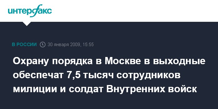 Охрану порядка в Москве в выходные обеспечат 7,5 тысяч сотрудников милиции и солдат Внутренних войск