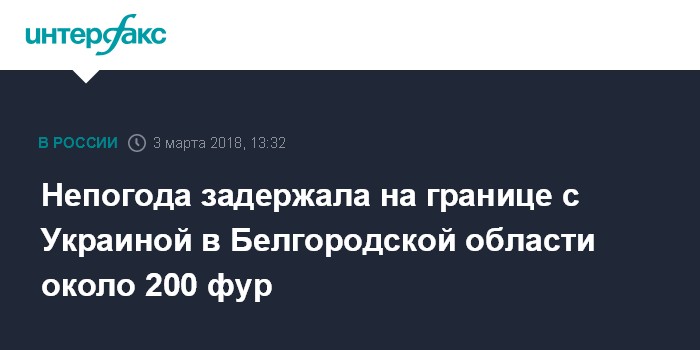 Москва. 3 марта. INTERFAX.RU - Около 200 грузовиков не могут выехать из России на Украину через многосторонний автомобильный пункт пропуска (МАПП) Нехотеевка в связи с плохими погодными условиями, сообщает пресс-служба Белгородской таможни в субботу.
