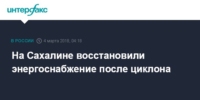 Москва. 4 марта. INTERFAX.RU - Полностью восстановлено энергоснабжение, нарушенное на юге Сахалина при прохождении мощного циклона, сообщило в воскресенье ПАО "Сахалинэнерго".