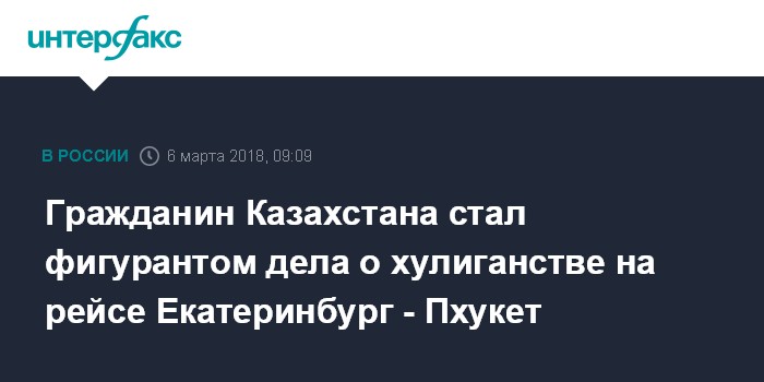 Гражданин Казахстана стал фигурантом дела о хулиганстве на рейсе Екатеринбург - Пхукет