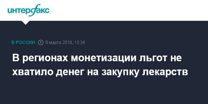 В регионах монетизации льгот не хватило денег на закупку лекарств