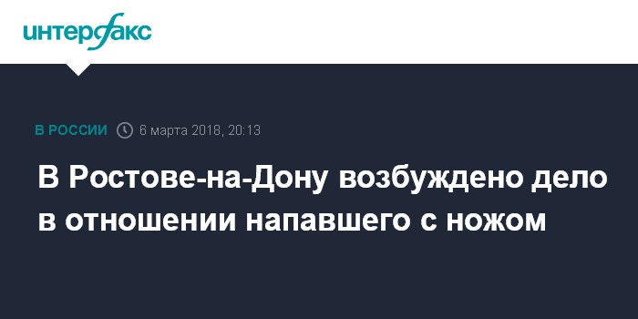 В Ростове-на-Дону возбуждено дело в отношении напавшего с ножом